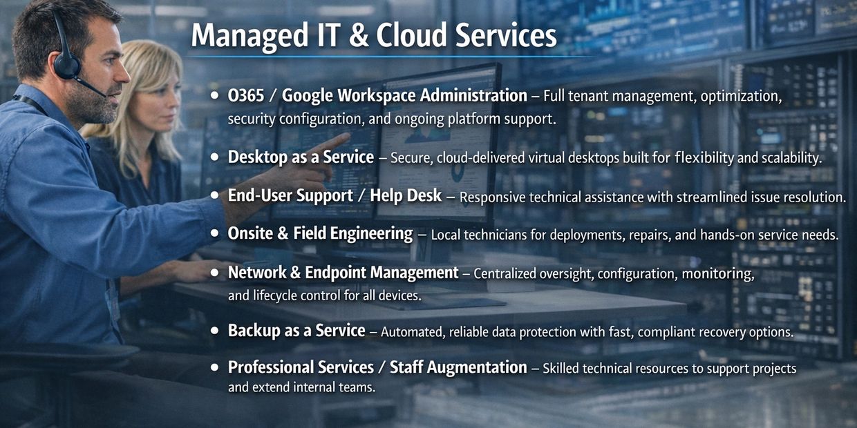 Your team is overwhelmed with mission‑critical priorities, leaving little time to evaluate the right Managed IT partners. In a rapidly evolving hybrid environment, you’re balancing cloud modernization, legacy systems, and day‑to‑day operational demands. K&E helps you identify and implement Managed IT solutions that reduce costs, improve service quality, mitigate risk, and maximize the ROI of your technology investments.